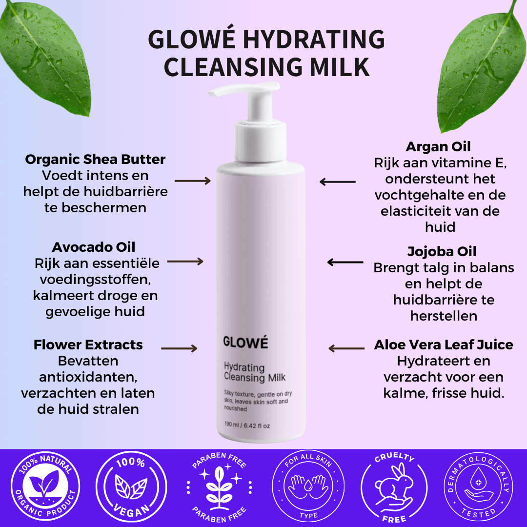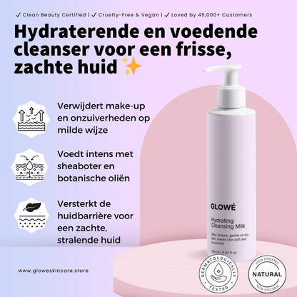 Glowé Hydraterende Reinigingsmelk | Biologische, milde, huidverzorgende reiniger